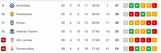 Κερδισμένος βγήκε ο Asteras Aktor, ο οποίος βγήκε από την επικίνδυνη ζώνη, φτάνοντας τους 25 βαθμούς, με τη νίκη επί του Παναιτωλικού στην Αρκαδία με ανατροπή, έχοντας πλέον από κάτω του Πανσερραϊκό και ΑΕΛ Novibet, που είναι στους 24 βαθμούς.