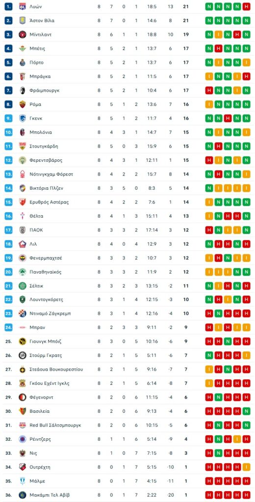 Η Λιόν με τη νίκη επί του ΠΑΟΚ πέρασε πρώτη με υπεροχή στην ισοβαθμία έναντι της Ρόμα. Ποιοι συμπληρώνουν την 8άδα και ποιοι πηγαίνουν στα Playoffs. Αναλυτικά η τελική βαθμολογία του Europa League.