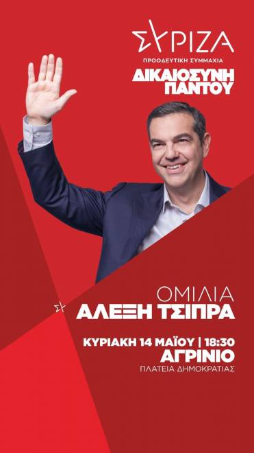 Την Κυριακή 14 Μαΐου στο Αγρίνιο ο Αλέξης Τσίπρας